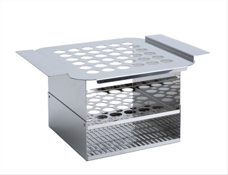 Cestello realizzato in acciaio inossidabile per 36 butirrometriDimensioni (LxPxA): (383x320x200) mm, Ø foro: 27 mm